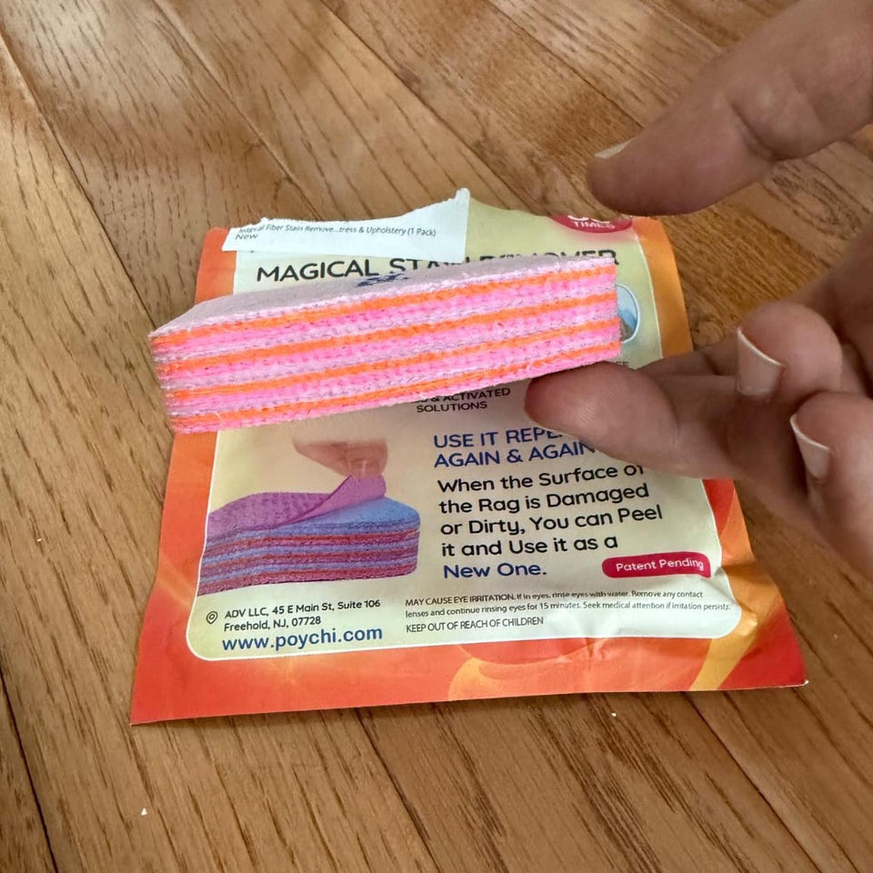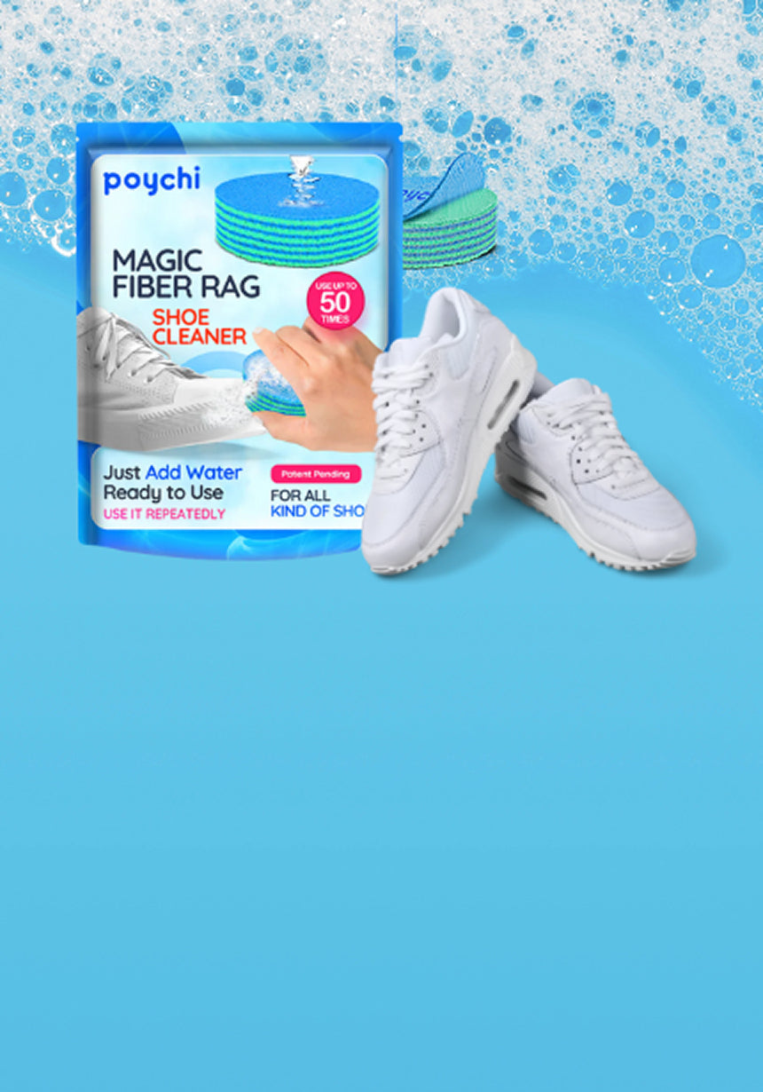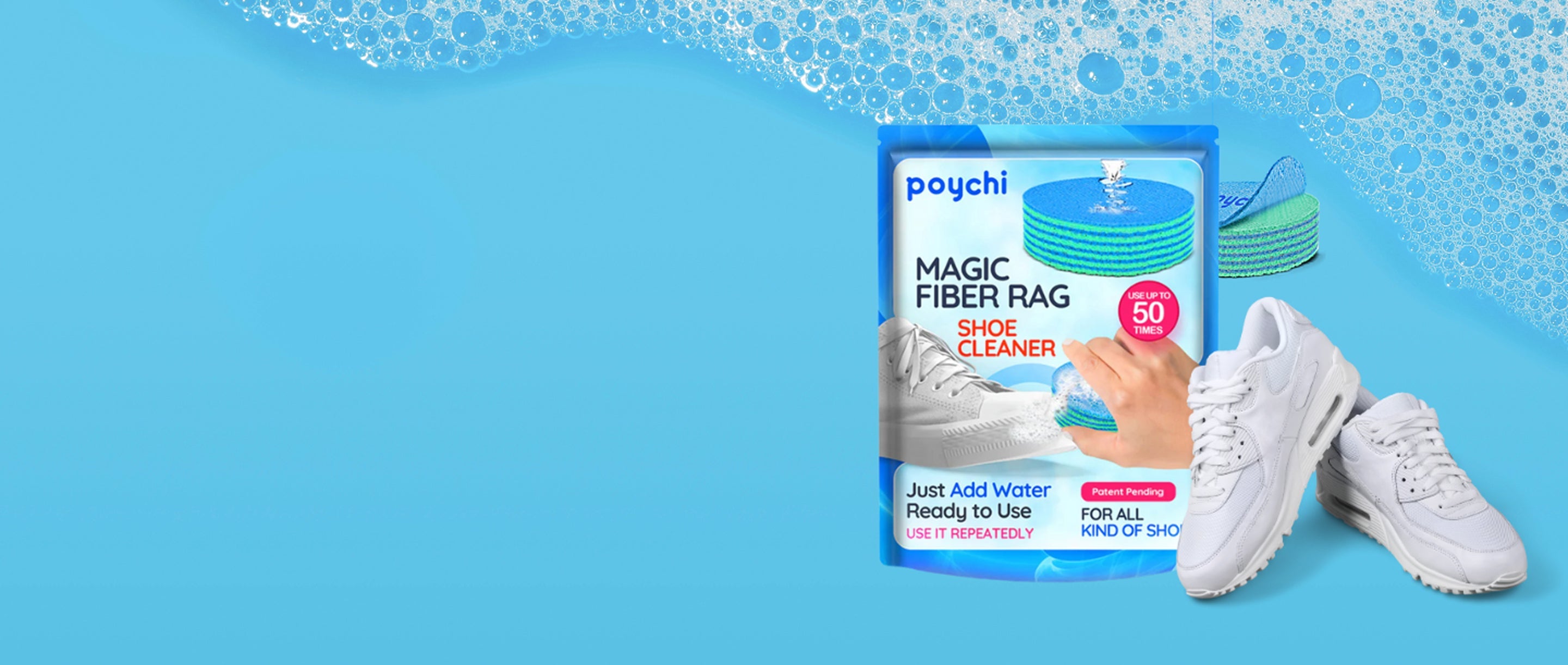 Poychi’nin patent başvurusu yapılmış katmanlı mikrofiberi, ayakkabı ve kıyafetlerde güçlü ve anında leke çıkarma sağlar — sprey yok, uğraş yok.